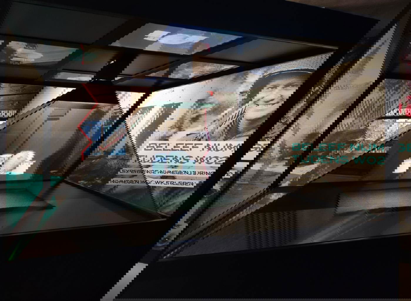 Jahre später wurde diese Illusion in einer Hologramm-Vitrine festgehalten, die Tijdlab wiederum mit einer ausgeklügelten Technik ausstattete. „Ein Live Feed eines 3D-Modells, bei dem die Benutzer das Modell manipulieren können“, sagt Thomas. „Sie entscheiden selbst, aus welchem Winkel sie das Objekt sehen und wie weit sie hinein- und herauszoomen. Im Infozentrum WK2 können sie unter anderem mit einem deutschen Helm, einem ikonischen Kinderwagen und einem durch Bomben geschmolzenen Weinglas „spielen“. Wünschen sie mehr Informationen? Dann sind diese Informationen auf einem zusätzlichen Bildschirm verfügbar.“