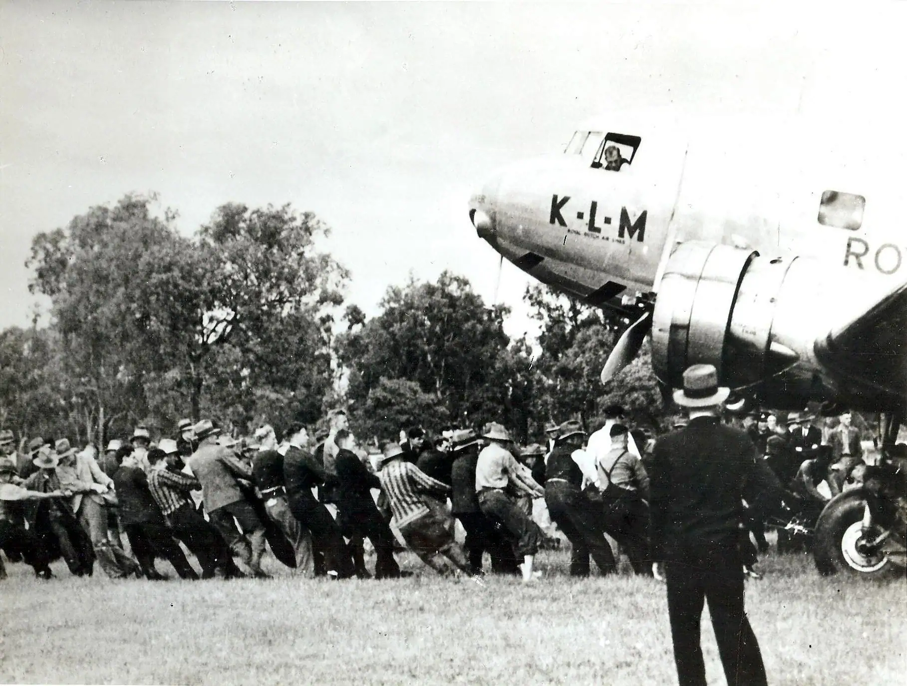 Captain Parmentier circles above the city of Albury. Arthur Newnham, announcer at the local radio station, notices this. He rushes to the studio and calls upon the residents of Albury to come to the racecourse. They should park their cars there and turn on the lights, signaling to the Uiver’s crew that they can make an emergency landing there.